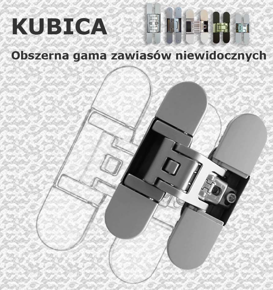 Kubica Hybrid K2780 to zawias wpuszczany przeznaczony do bez przylhi o grubości skrzydła 35-45 mm z dodatkową okładziną / opaską. Nośność dla dwóch zawiasów nie może przekraczać 80 kg. Ramiona tego zawiasu zostały wykonane z aluminium, korpus ze stali, a elementy regulacyjne ze znalu. Prawidłowo zamontowane zawiasy umożliwiają pełne otwarcie skrzydła do 180°.